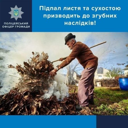 Нагадуємо, що cпалювання опалого листя, сухої трави та інших рослинних залишків категорично заборонено законодавством України!